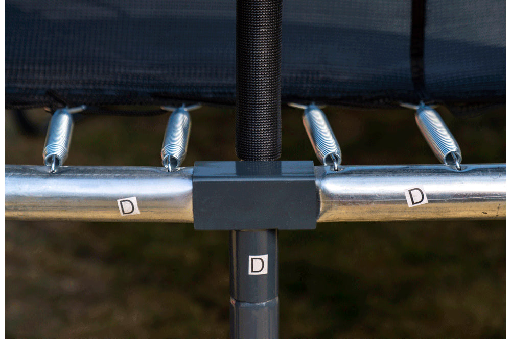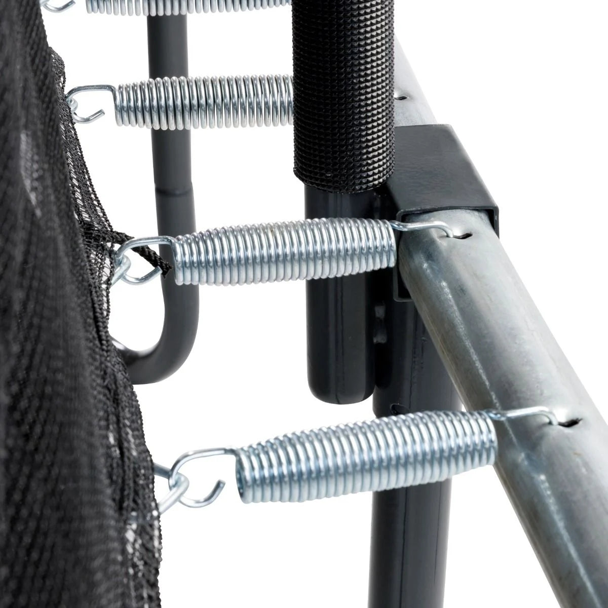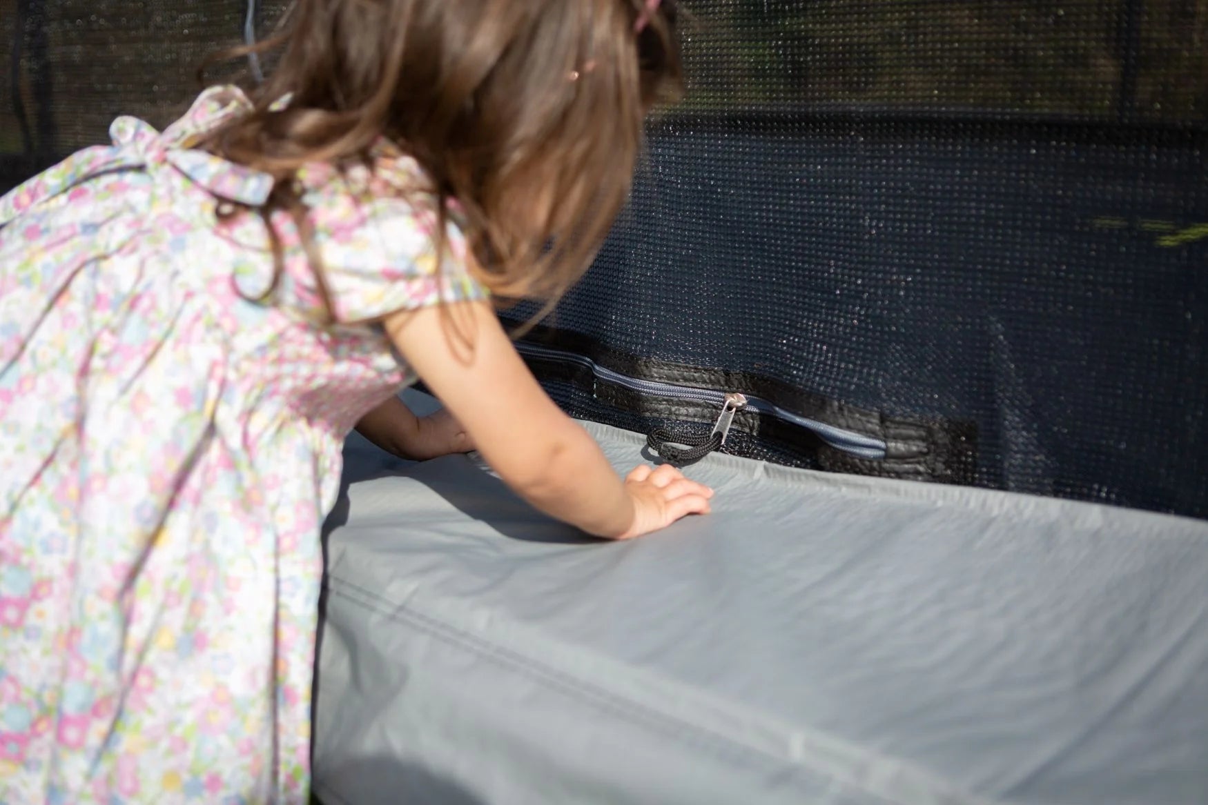 Designed with durability and safety in mind, this trampoline features a strong galvanised steel frame, a patented G3 Safety Enclosure System, and a deluxe grey surround pad covering the powerful 7” springs. The enclosure net sits inside the springs, ensuring fingers and toes stay safe during every jump.