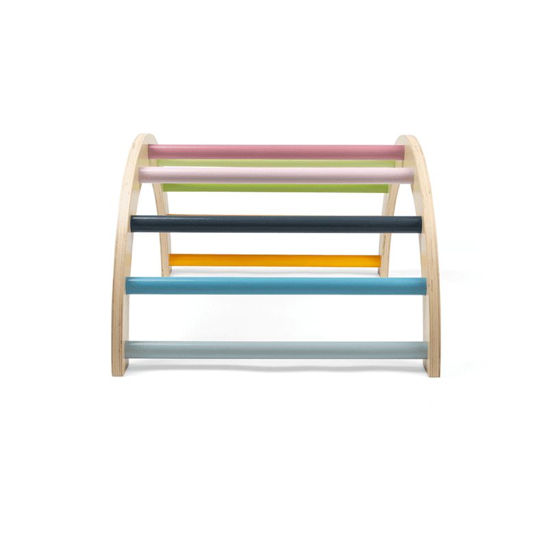 This Wooden Climbing Arch is like the jack-of-all-trades of Montessori toys, offering play possibilities that are seriously endless; You can use it as a climbing frame, create a cosy den by putting a blanket over it, hang adorable rattles and teddies for babies, and more! Our climbing frame uses muted rainbow-coloured rungs to help tots build up their stability, balance, core strength, and climbing chops as they climb their way over. Plus, its compact size means it won't hog too much room in the nursery or playroom (only for indoor use, please!), and it's easy to store away. It's suitable for babies 12 months and up and makes for an awesome 1st birthday or Christmas gift! Assembly by an adult required.