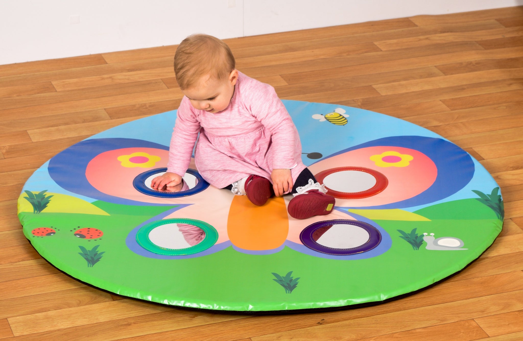 Turn tummy time into a magical sensory adventure with our Butterfly Baby Play Mat! Designed for babies aged 0–2 years, this generously sized mat (1.2m diameter) features four shatter-proof safety mirrors and a vibrant butterfly print to spark curiosity and encourage exploration. Perfect for playrooms, nurseries, and early years settings, this mat supports key developmental milestones while providing a safe, comfortable space for babies to roll, reach, and discover.