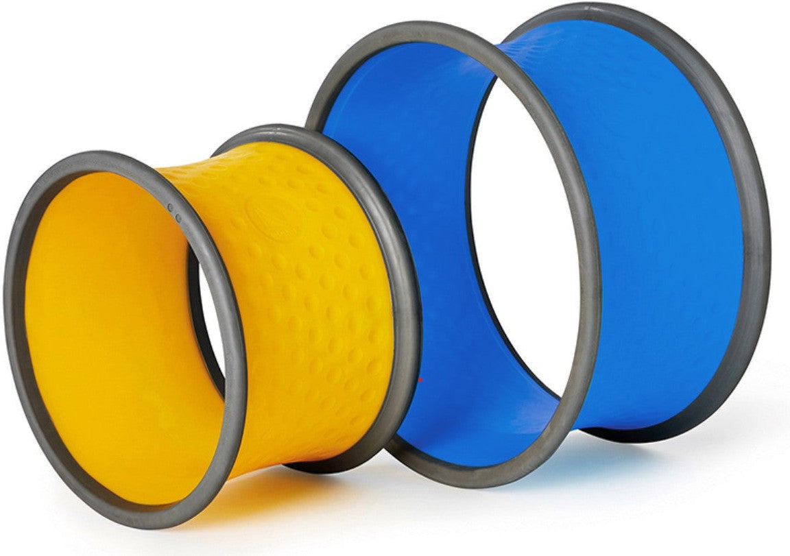 Multiple Body Wheels can also be stacked to form a tower, with the large hole in the middle allowing children to play inside or crawl through. The Body Wheel has a soft synthetic rubber rim to protect children’s fingers and toes, and to prevent damage to the floor.