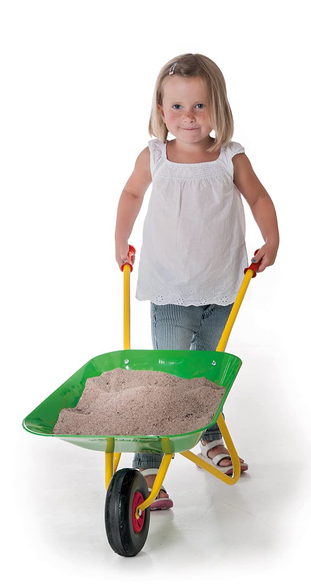 The Rolly Metal Wheelbarrow is a delightful and durable toy designed for children aged 2½ and up. Whether your little one is helping in the garden, collecting shells at the beach, or transporting treasures in the sandbox, this child-sized wheelbarrow is built for fun and discovery.