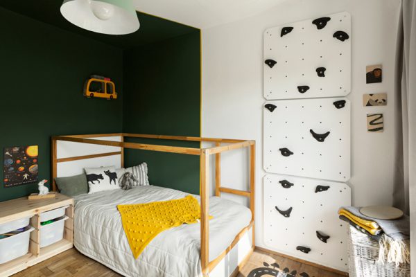 Plywood panels can be mounted in any combination, depending on individual needs and preferences. The boards are made of deciduous plywood – an extremely durable material, which is also extremely visually and aesthetically attractive, polished and smooth. Mounting of the climbing plates is convenient and simple – it is done with the use of dowels and screws, which should be mounted in the corners of the plate. This allows you to perfectly level out any surface irregularities and change the climbing handles without any difficulty. Climbing boards are painted with water-based paint or acrylic lacquer – completely safe for children. Climbing stones included in the set are made of resin – specially prepared, certified and thus completely safe for children. Climbing handles vary in shape and size so you can create a variety of mosaics on the climbing wall.