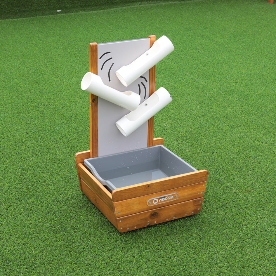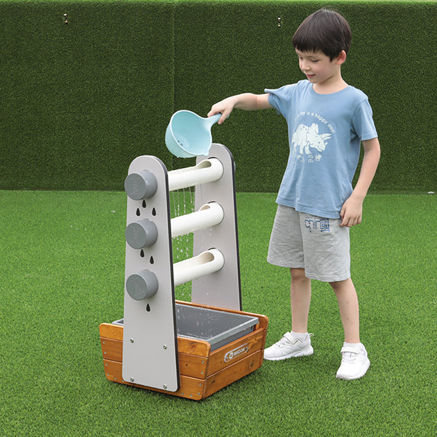 Children can pour water into the tubes themselves and observe which direction it travels as it zig zags.