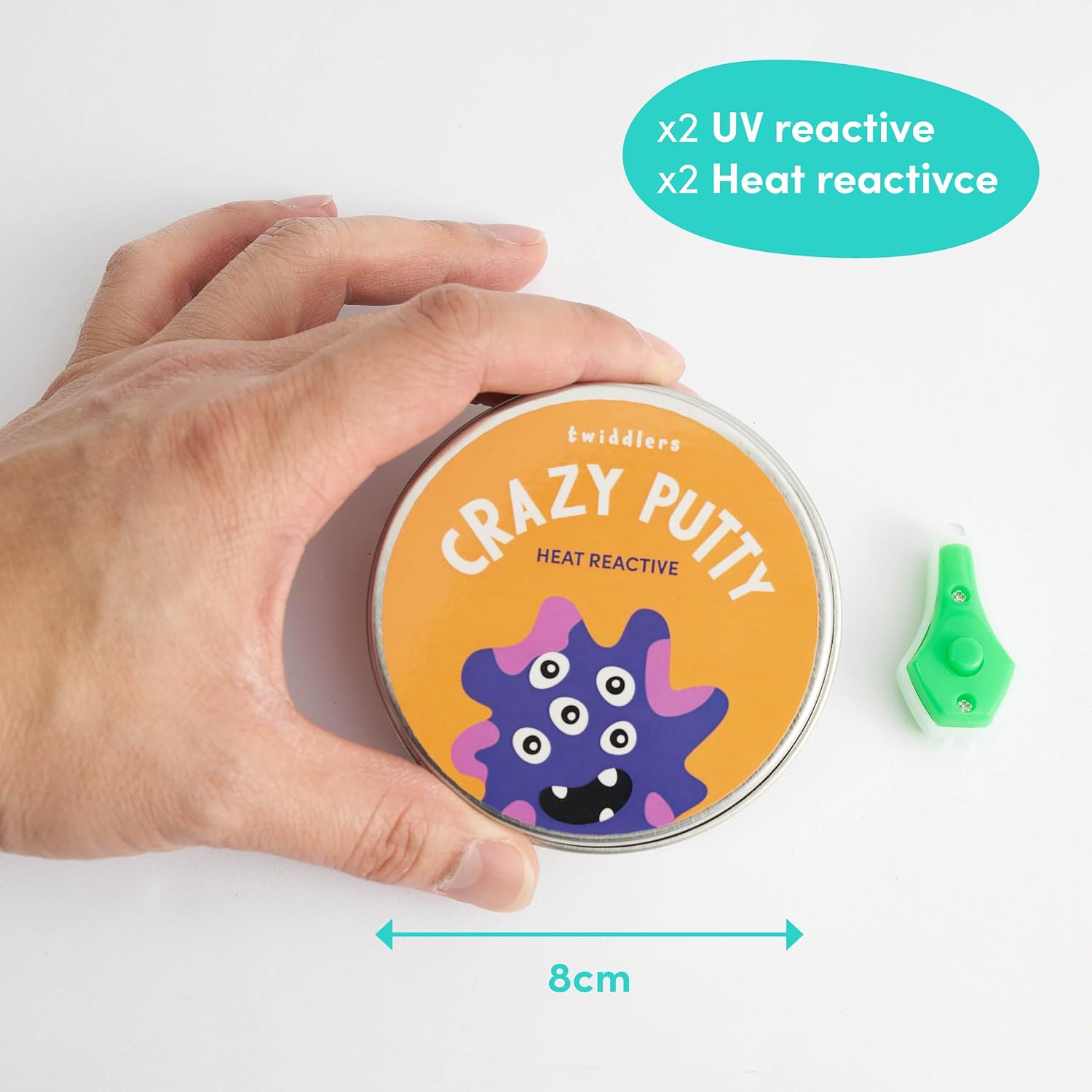 • Includes: 2 heat-reactive putties, 2 UV-reactive putties, and 2 mini UV torches