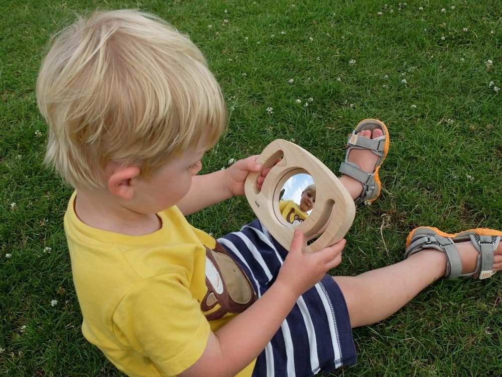 This Easy Hold Plane Mirror is a hand-held acrylic reflector designed for young children, perfect for group role play and self-reflection. Its sturdy rubberwood frame makes it easy for little hands to hold and manipulate, encouraging personal awareness and observation. Ideal for use in early years settings, it supports self-awareness, motor skills, and observational learning.