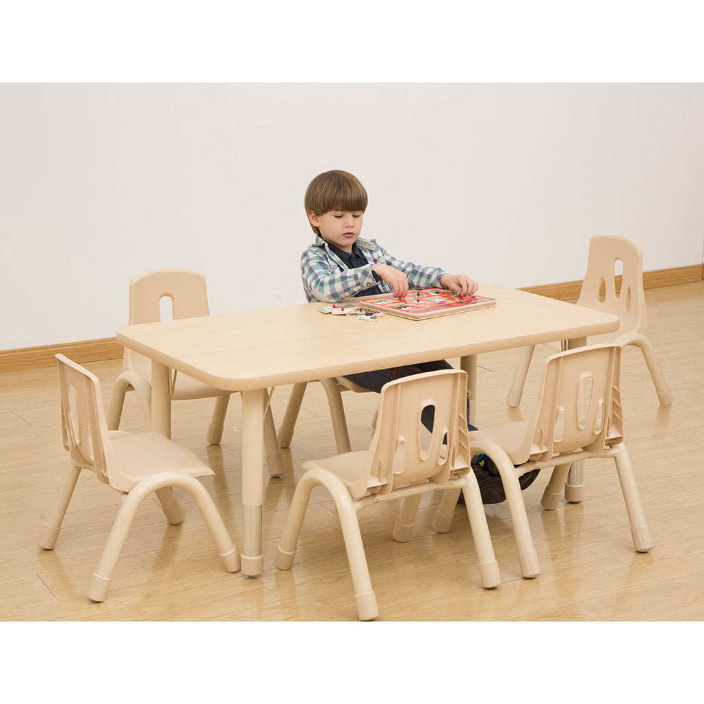 The Elegant Height Adjustable Rectangular Table – a sophisticated choice to bring neutral calming tones into your classroom. Finished to a high standard, this range is designed to foster a more effective learning environment for young children. Available in Maple with a tough rounded PVC edge, these high-quality height adjustable tables are suitable for children aged 2 through to 11.