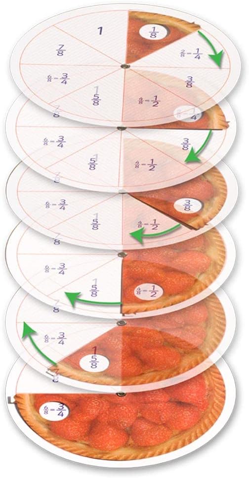 Understanding fractions has never been so easy or fun with the Fractions in Action series! These innovative, double-sided devices are designed to help children visualise and grasp the concept of fractions in an interactive and engaging way. Each rotating disc showcases fractions as numbers, with vibrant illustrations that make learning both visual and hands-on. Flip the disc over, and you’ll find a blank side – perfect for challenging estimation skills.