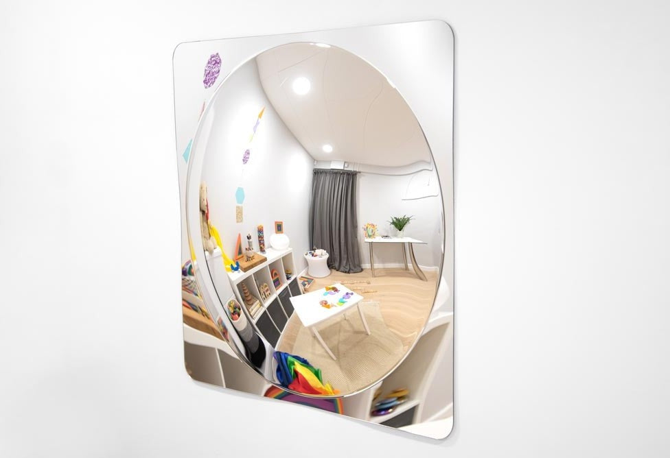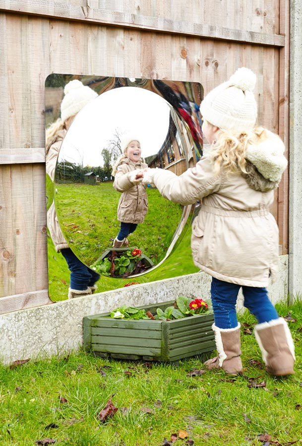 Convex mirror panels provide distorted fun and fascinating views of the world! Made from scratch resistant acrylic these mirror panels are safe and ideal for any classroom or nursery setting. Children are drawn to mirrors for the observation of themselves and objects. The convex mirror domes provide a distorted, fun and interesting view of the world for children to explore. They can be sited inside or outside and come with sticky pads as well as chunky blue corner fixing brackets for attachment to any flat surface.
