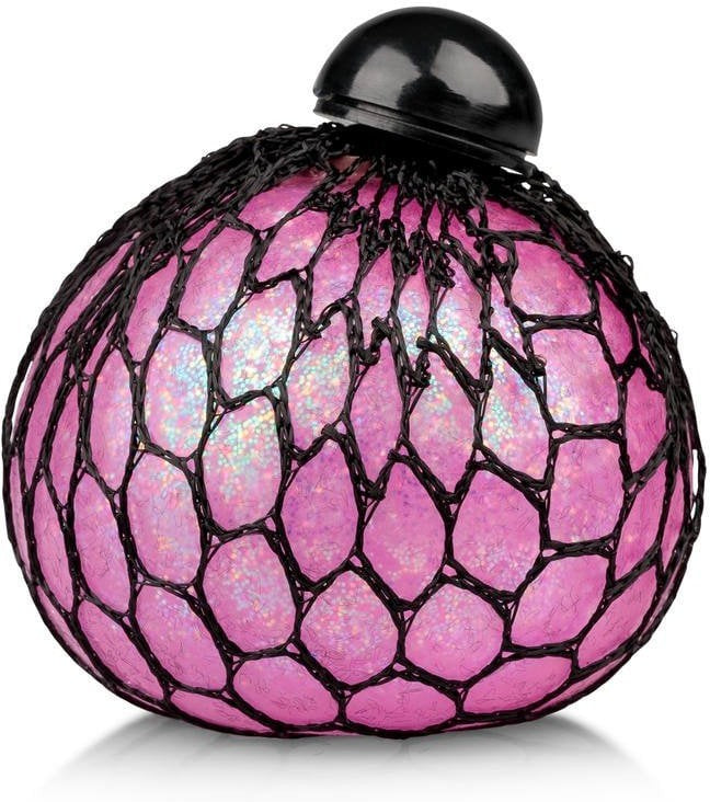 Give your fingers a squeeze with this 7cm rubber-like, gel-filled ball surrounded by a soft net mesh! But don't worry, it's not your typical Squishy Mesh Ball - this squeezy novelty will make your eyes glitter with its popping colours of pink, green, and blue. Let go and the glittery bulges will appear through the netting, giving you an addictive squishy toy to relieve some stress.