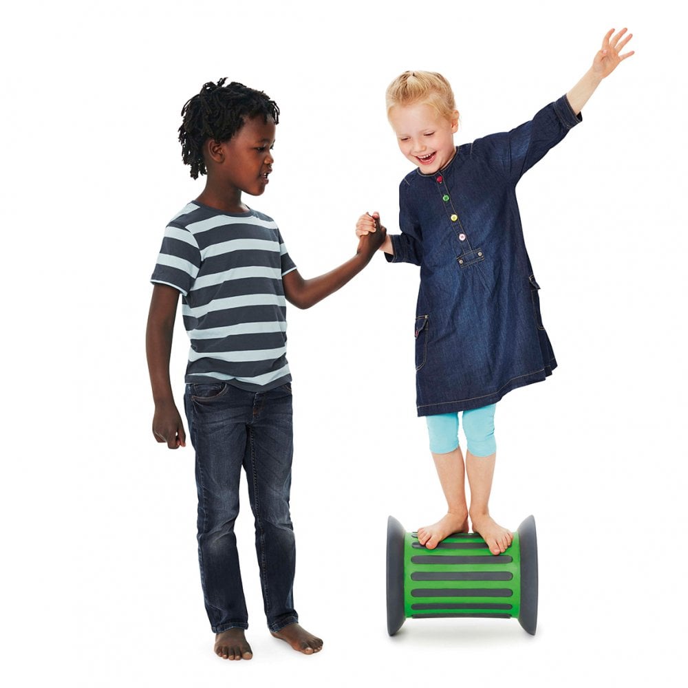 It offers a progressive motor skills challenge, from small kids just managing to keep their balance with the support of a friend or a hand rail, to older children pushing the boundaries of what they can do without falling off. Whether it is used for play or in therapy, the Roller will stimulate the primary proprioceptive sense, as well as the vestibular and tactile senses.