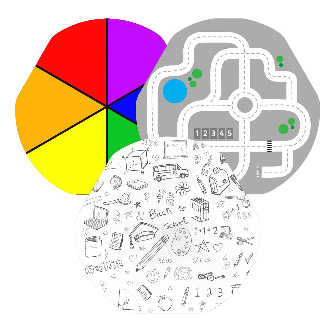 • Variety of themes: Choose from grass, chalkboard, mirror, dry wipe, road safety, and colour sorting designs.