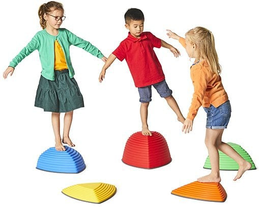 Five 'hilltops' in different heights and vibrant colours which will inspire children to jump from top to top. Hilltops develop children’s ability to estimate distances and make them familiar with heights.Each top is provided with rubber ’feet’ which prevent them from slipping and protect the floor.