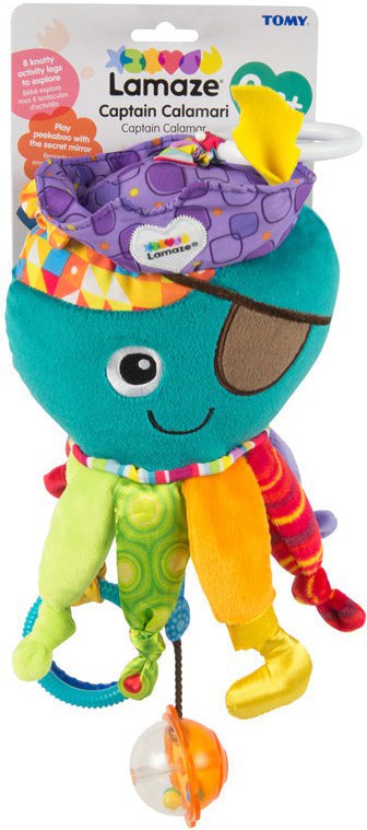 Set sail on a sensory adventure with Captain Calamari, the colourful octopus that's packed with developmental features to captivate your baby’s imagination! With eight fun-filled knotty legs, a crinkly pirate hat, clacking rings, and a surprise mirror, this charming captain will stimulate your little one’s senses and encourage interactive play. Perfect for on-the-go, Captain Calamari easily attaches to strollers, car seats, or play gyms with its convenient Lamaze link.