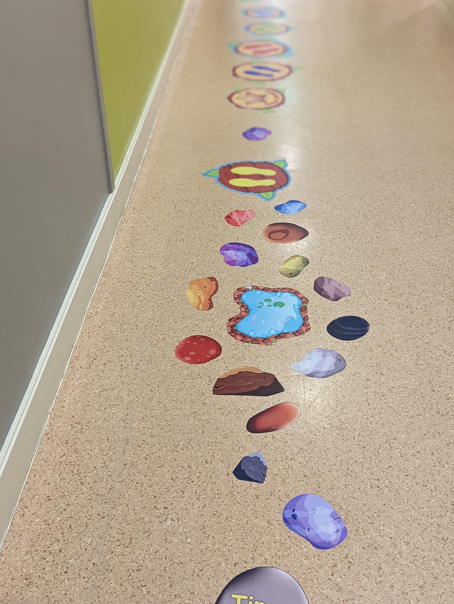 • Wall and Floor Elements: Engages children with interactive graphics on both walls and ground surfaces.