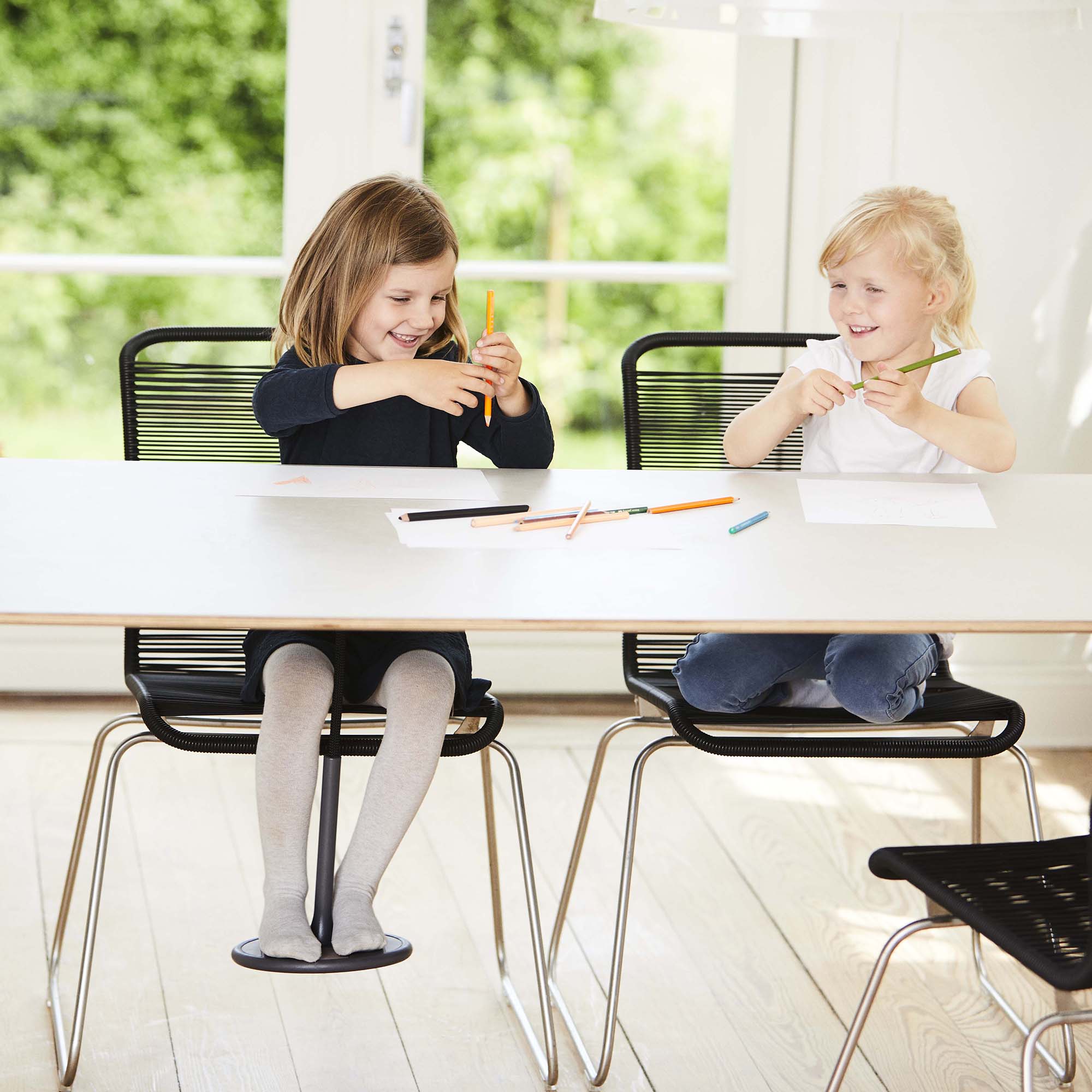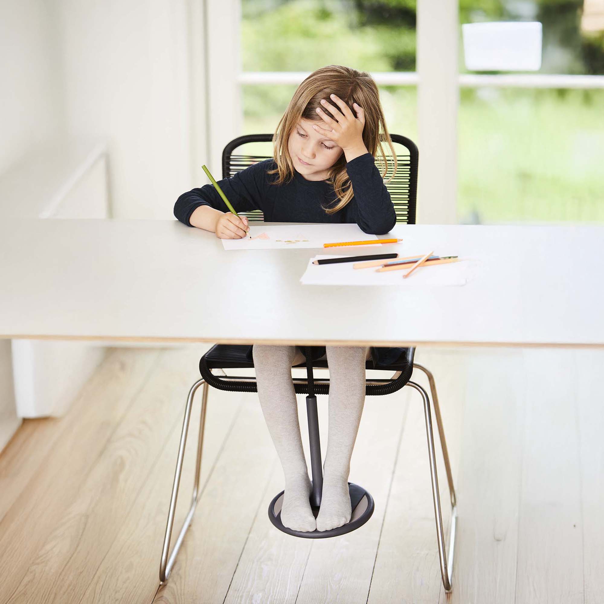The Mini SWNX Foot Swing is specially designed for 3-7 year-olds and children's furniture. When seated on a chair at this age, a child's feet do not reach the floor. Mini SWNX allows restless children the opportunity to alleviate their urge to move in an appropriate fashion. Attach underneath solid wood or MDF tables, with the fixings provided. Ideally 20mm thick tabletops.