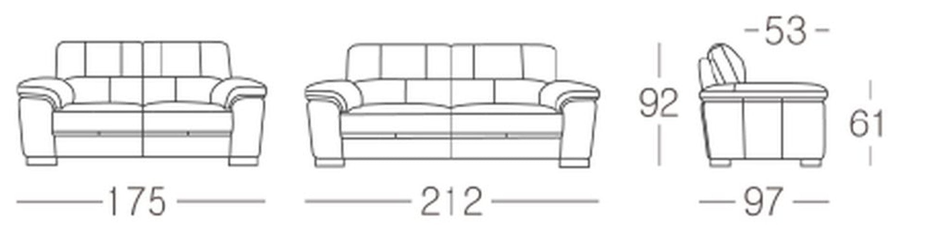 3 Seat Sofa: Width 212 CM x Depth 97 CM x Height 92 CM
