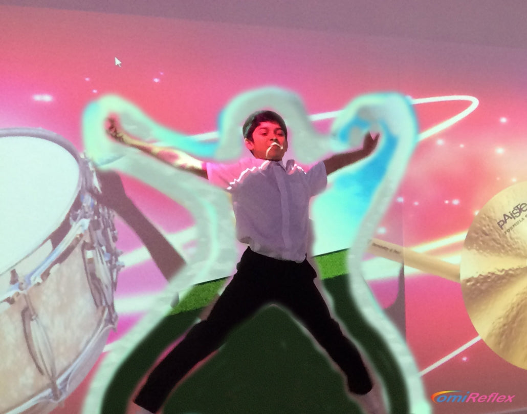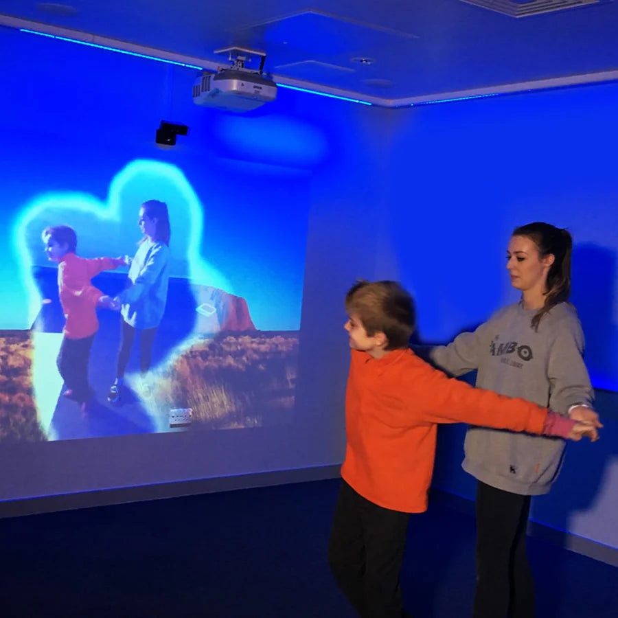 Experience the magic of interactive play with omiReflex: the innovative wall projection system that creates a captivating mirror image of the child while projecting dynamic moving images for them to interact with.