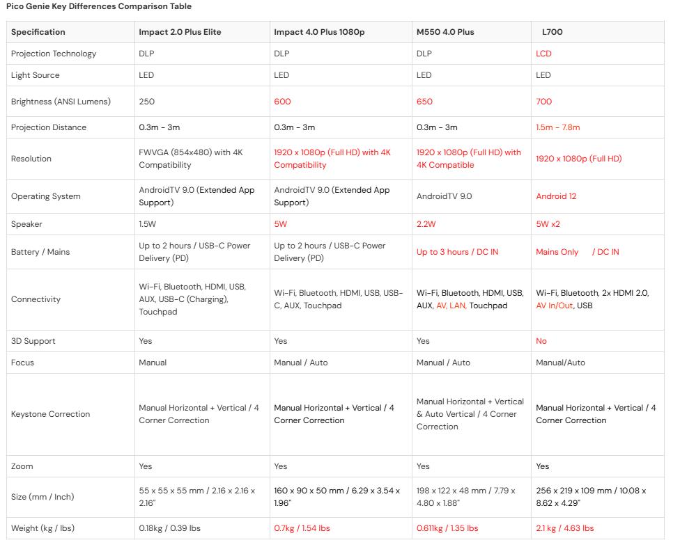 Both models deliver exceptional image quality and versatile connectivity. Choose Impact 4.0 Plus for sensory spaces and portability, or M550 for maximum brightness and sleek design.