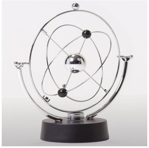 The sleek silver circlets of this beguiling desktop mobile rotate grandly around a central orb. The motion is continuous and, on first glance, seems impossible to comprehend. The secret is hiding at the base; a battery-powered engine spins a powerful magnet, creating a variable force that acts upon the pendulum weight secured to the outer hoop. Even when you know precisely how it operates, the perpetual, measured movement and gravity-defying form still captivate. Packed with retro geek-appeal, this is an excellent curiosity line of gifts for grown-ups.