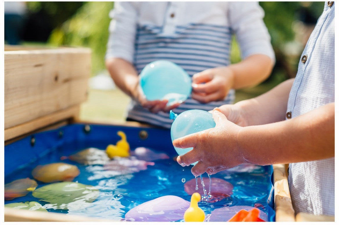 Let your kids have all the fun of the beach in your own backyard with Plum® Sandy Bay Wooden Play Tables. These versatile tables encourage hours of outdoor sensory play, whether your little ones are splashing in the water, making sandcastles, or even transforming the water table into a ball pit for endless imaginative play. After a day of fun, slide the tables together for compact storage. Made from sustainably sourced timber with rounded edges for safety, these tables are perfect for compact gardens or patios.