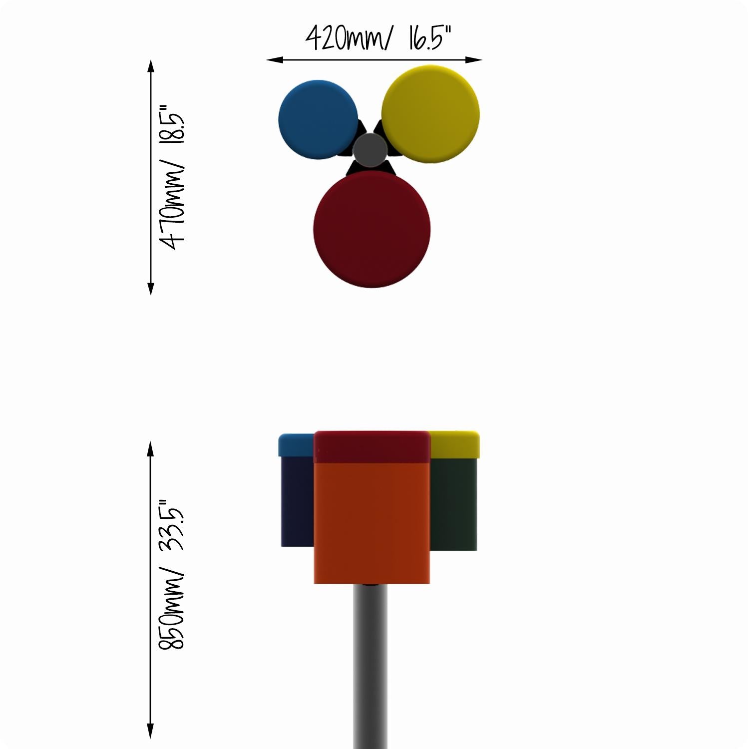 Perfect for nursery schools, pre-schools, and kindergartens, these bright and inviting bongo drums are easy to securely fix in the ground or to a wall, fence, or post and are suitable for indoor and outdoor use. The Rainbow Bongos can be purchased on their own or with Rainbow Chimes and Rainbow Metallophone to make a colourful ensemble. (Rainbow Trio Ensemble)