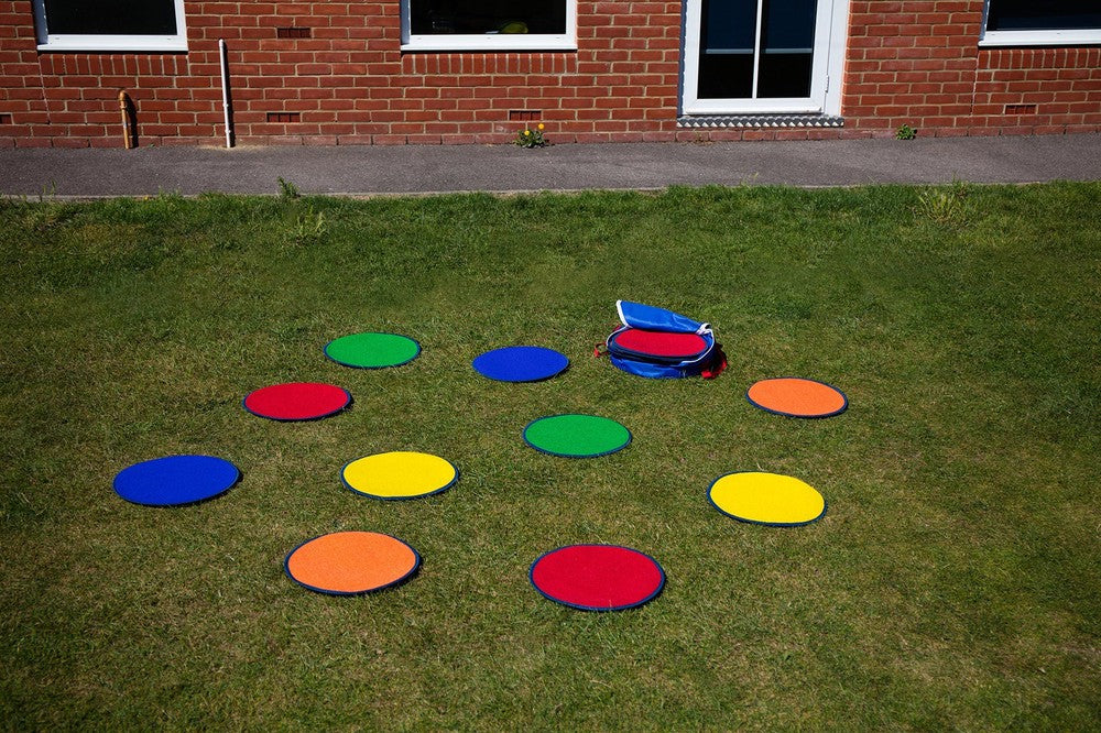 Set of 30 round circle mats ideal for outdoor seated activities.