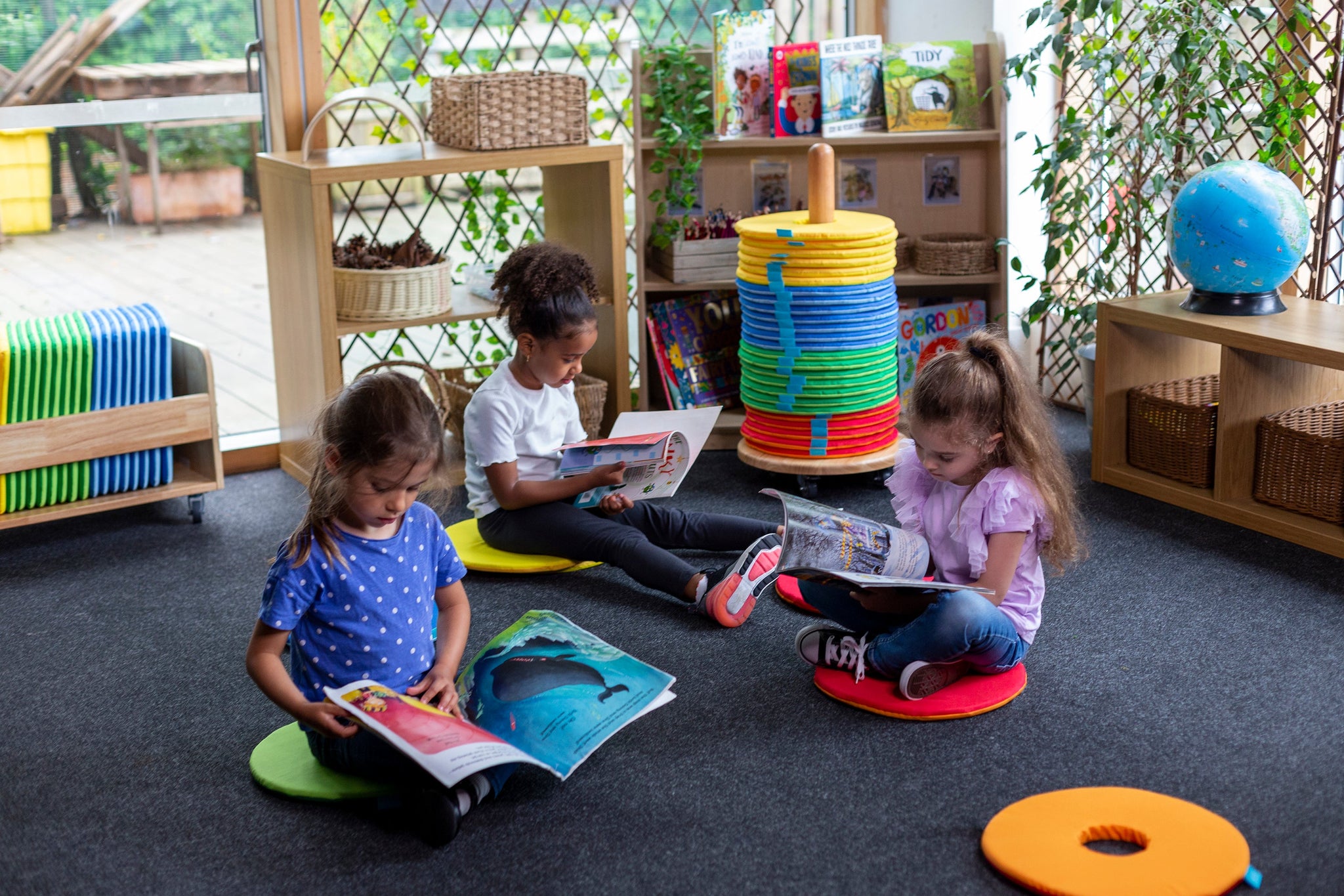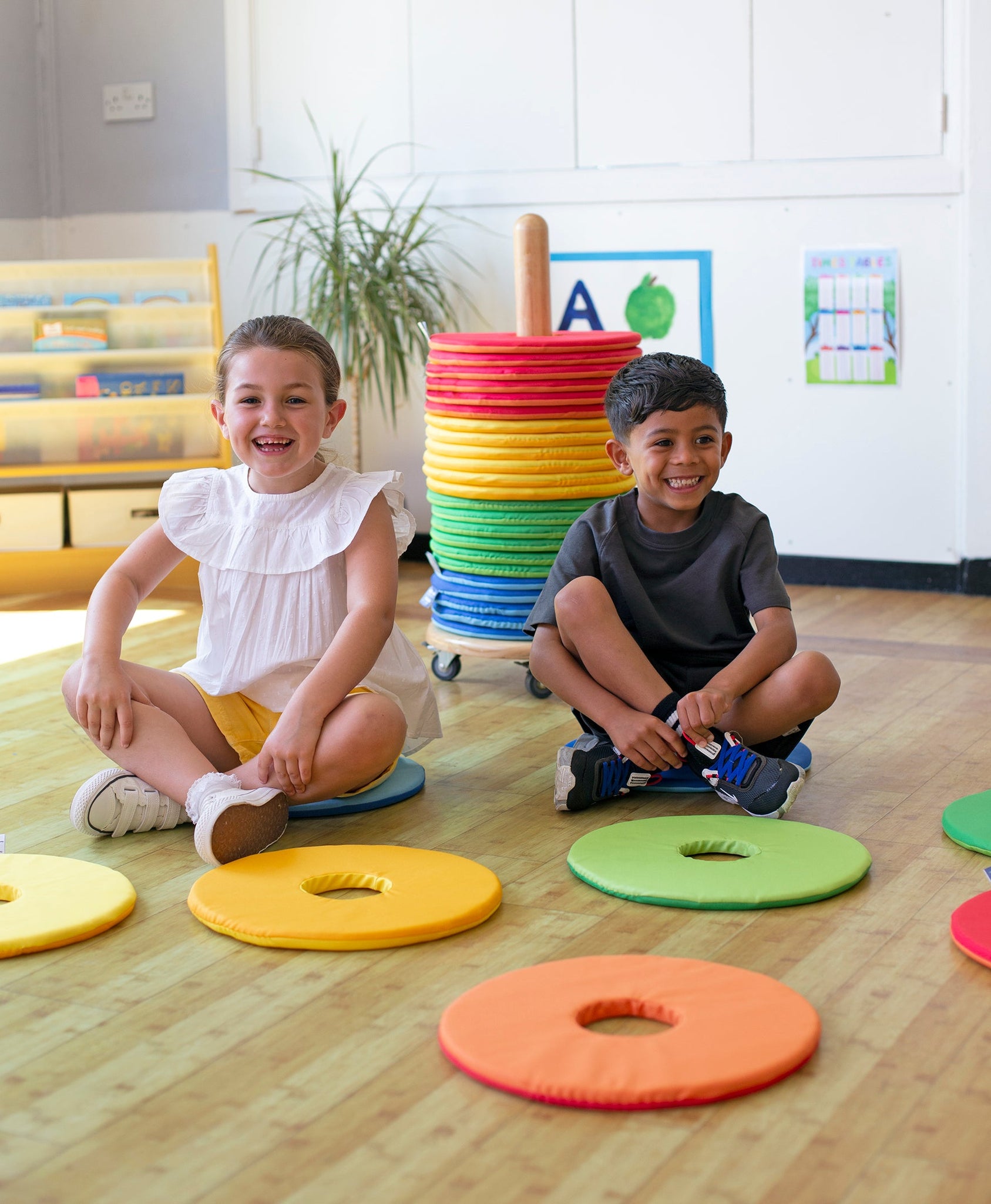 Brighten up your classroom with the Rainbow™ Circular Mats & Donut™ Trolley—offering convenience, portability, and a pop of colour to any learning space.