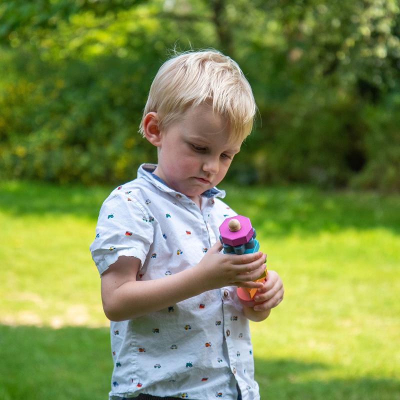From the single-edged circle to the eight-edged octagon, each nut increases in complexity, offering a brilliant way to explore shape, colour, and early maths through play. Perfectly sized for little hands, this twisting treasure helps build strength, dexterity and coordination while introducing shape names, colour recognition, and descriptive language.