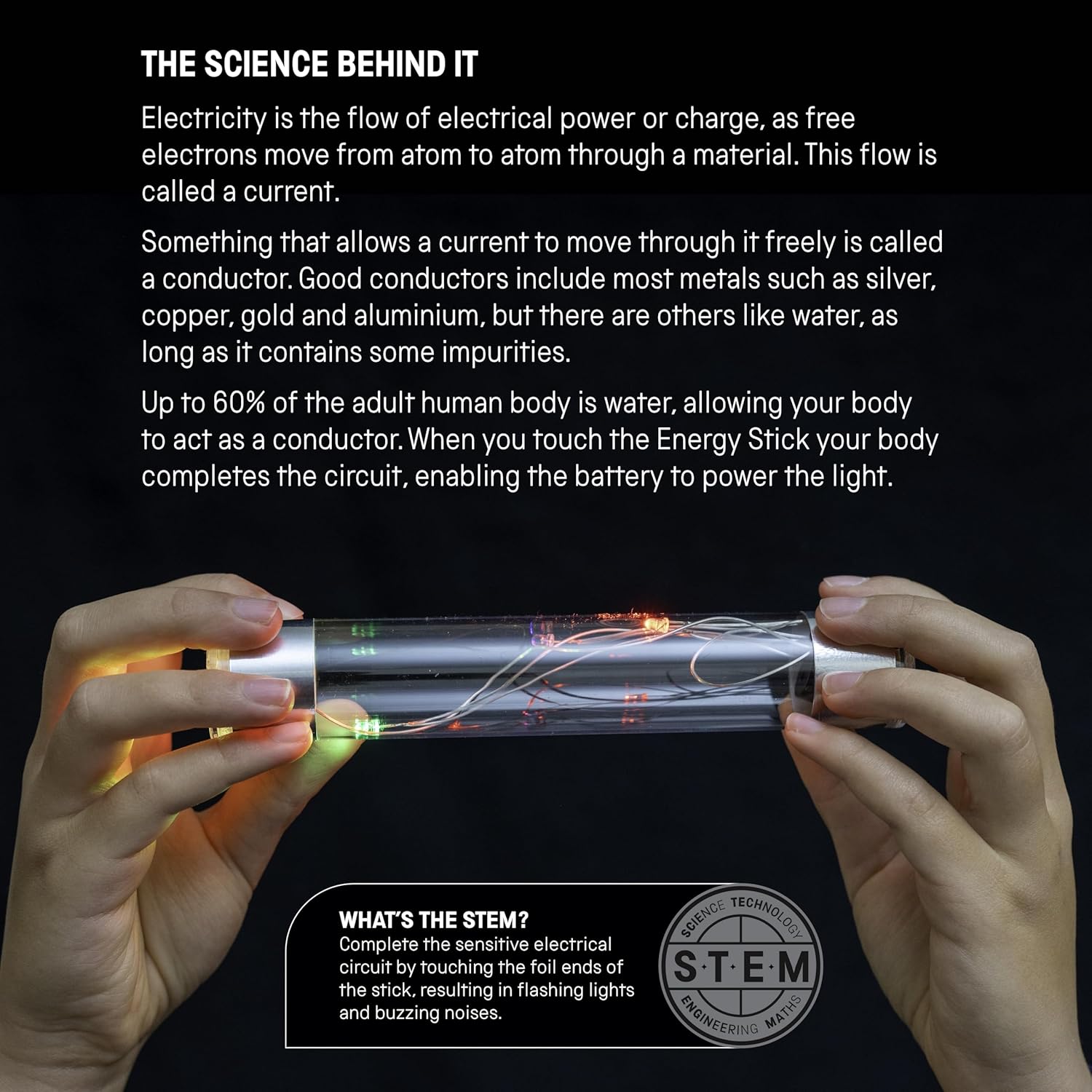 Perfect for interactive learning, this clever gadget teaches the basics of electrical circuits and conductivity in a fun, memorable way. Great for classrooms, science fairs, parties, or home experiments, the Energy Stick encourages curiosity and teamwork. You can even form a circuit with multiple people to explore how connections work!