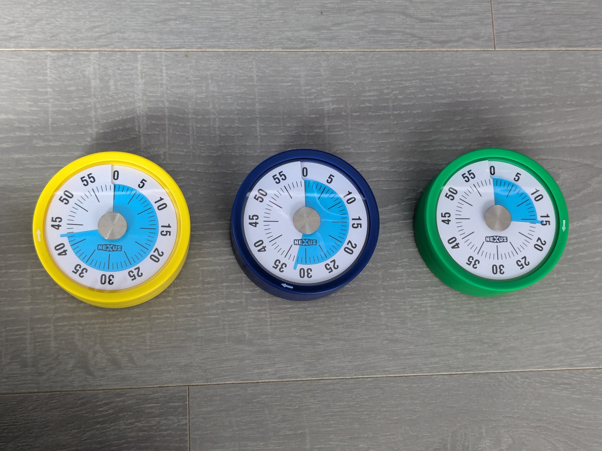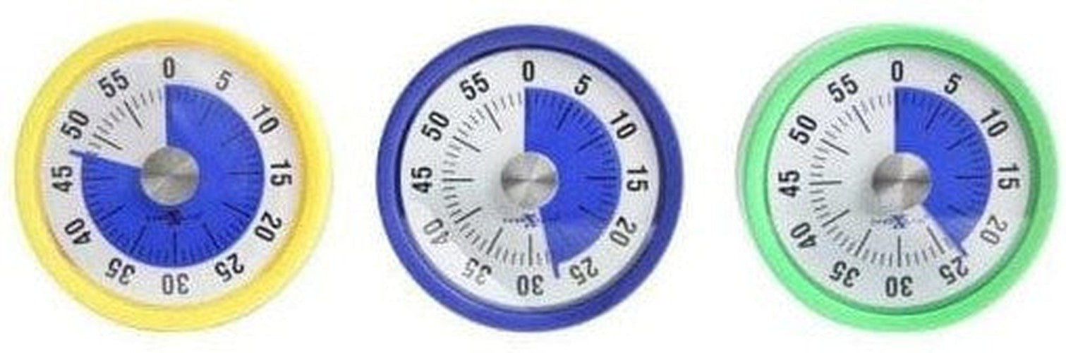 Available in a set of three vibrant colours—yellow, blue, and green—these timers are particularly suited for classroom settings, making it easy for teachers to manage multiple activities simultaneously.