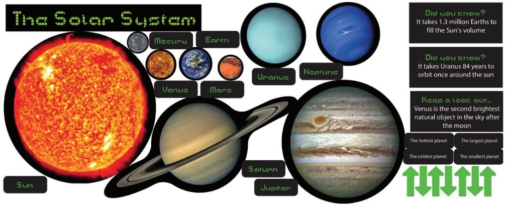 Solar System Sticker SetPrinted on a Sheet Measuring 1250mm x 550mm. Individual images with easy peel off for you to place into your room setting