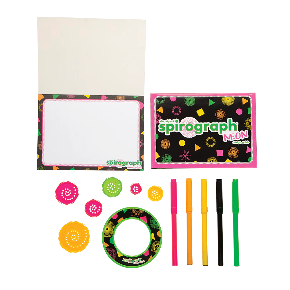 Let your creativity shine brighter than ever with the Spirograph Neon Set – a dazzling twist on the iconic spiral art toy! Bursting with bold, electric colours and precision tools, this 38-piece set takes your spiral creations to glowing new heights. Whether you're crafting wild whirls, intricate patterns, or mesmerising mandalas, this kit lights the way to sensational designs.