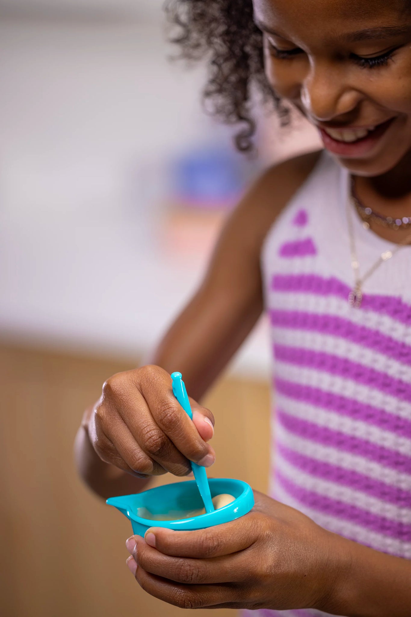 Designed for kids aged 6 and up, these mini cake kits are perfect for birthdays, playdates, rainy-day fun or as an extra-sweet surprise in a sensory play session. With just five simple steps—mix, pour, bake, decorate, and munch—your little baker can create tasty little treats that are big on flavour and even bigger on fun!