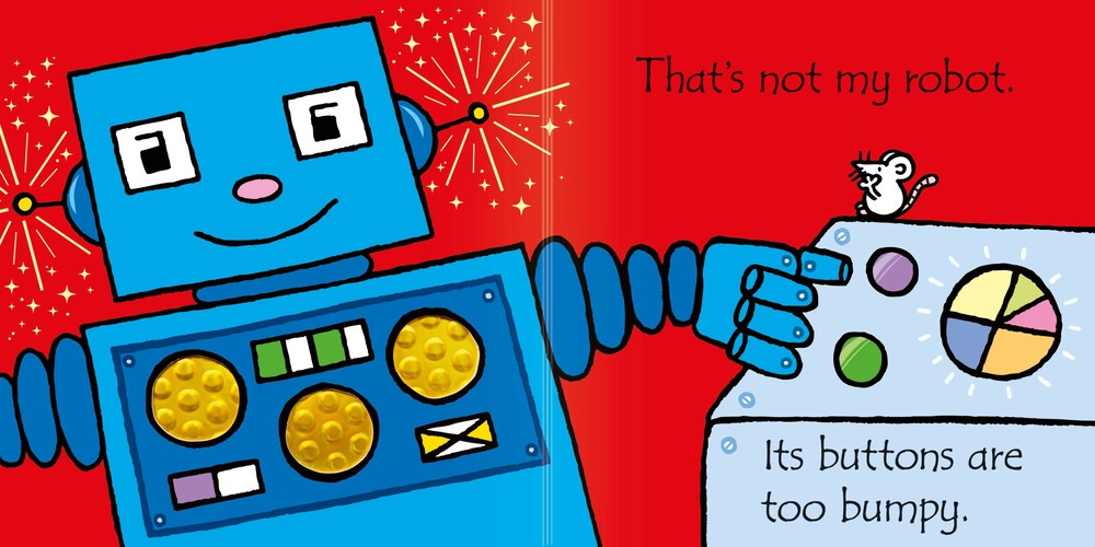 Meet five cool robots in this fun addition to the much-loved That’s not my... series. Babies love the best-selling That’s not my… books with their bold illustrations, patches to stroke, and a mouse to spot on every page, all designed to develop sensory and language awareness.
