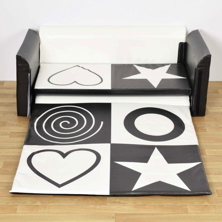 With padded base mat and 4 sides (6 pieces – one side is supplied in two parts to create a closeable opening). The pieces all connect with hook and loop fastener to make a purpose built area for any age from babies upwards. The versatile design means you can store it flat or turn it into an occasional sofa. Makes a great Ball pit (balls sold separately)