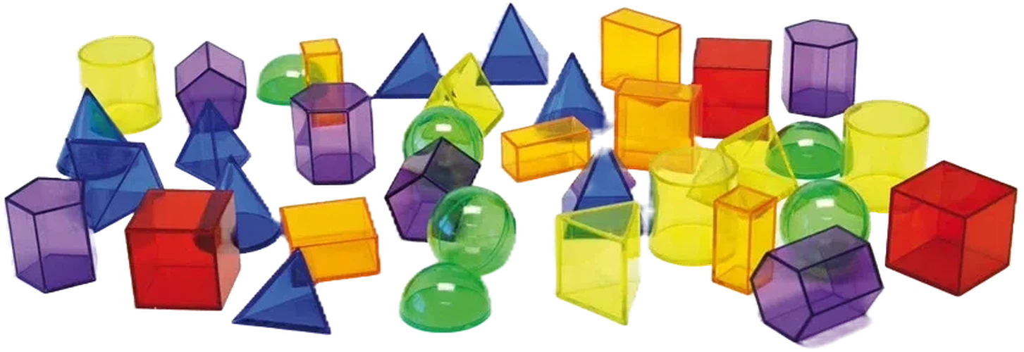 Set of small geometric solids in 12 different shapes and 6 colours. Ideal for learning shape names and attributes using a light panel. Comes in a convenient storage container.