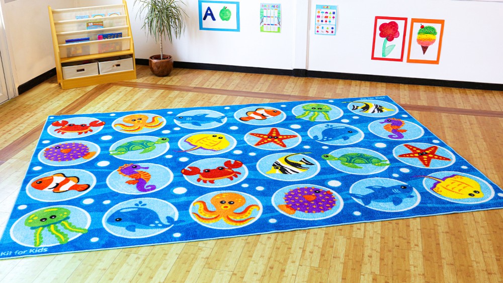 Dimensions: With a generous size of 3x2 meters, this rectangular placement carpet offers ample space for marine-themed activities and discussions.