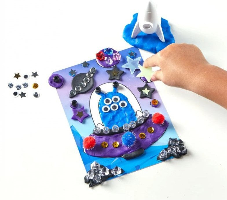 Comprehensive Set: The kit includes 3 colors of modeling dough, shape cutters, sequins, beads, glow-in-the-dark stars, gems, pom-poms, googly eyes, a rolling pin, Activity Cards, and an Activity Guide.