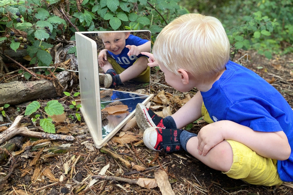 Engage children in imaginative play and self-exploration with this Wooden 4-Way Mirror. Crafted from sturdy birch plywood, it features four 90-degree corner mirrors that encourage reflection, observation, and curiosity. Perfect for both learning environments and playrooms, it’s ideal for exploring objects, shapes, and space. The 2mm acrylic mirrors provide clear reflections, while the stable base and rubber feet ensure durability and protect surfaces. Assembly is quick and easy, requiring only adult supervision.