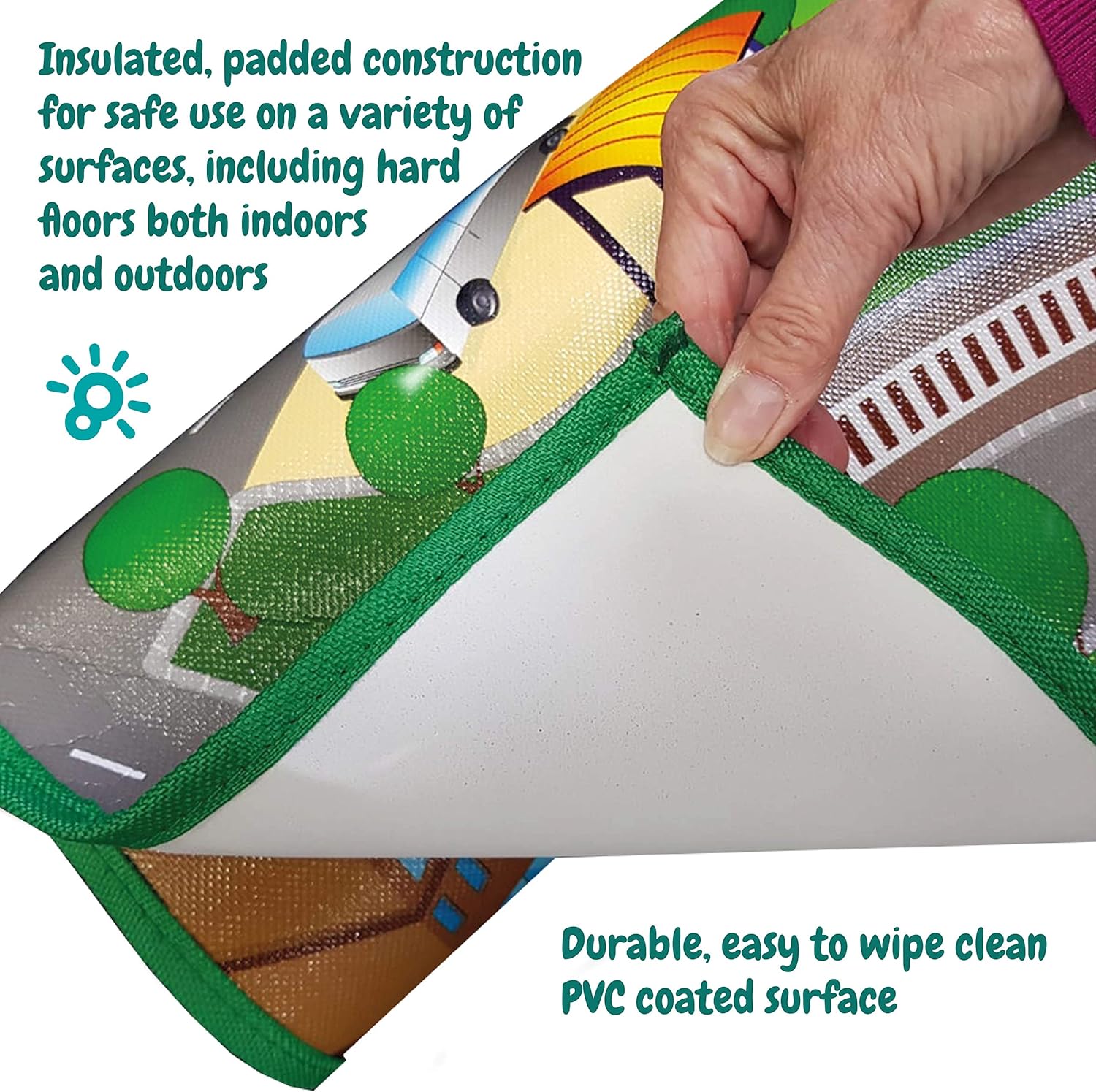 When the fun is done, simply wipe clean, roll up, and secure with the attached ribbon. It's portable, practical, and packed with playful potential – making it a wild must-have for any little explorer!